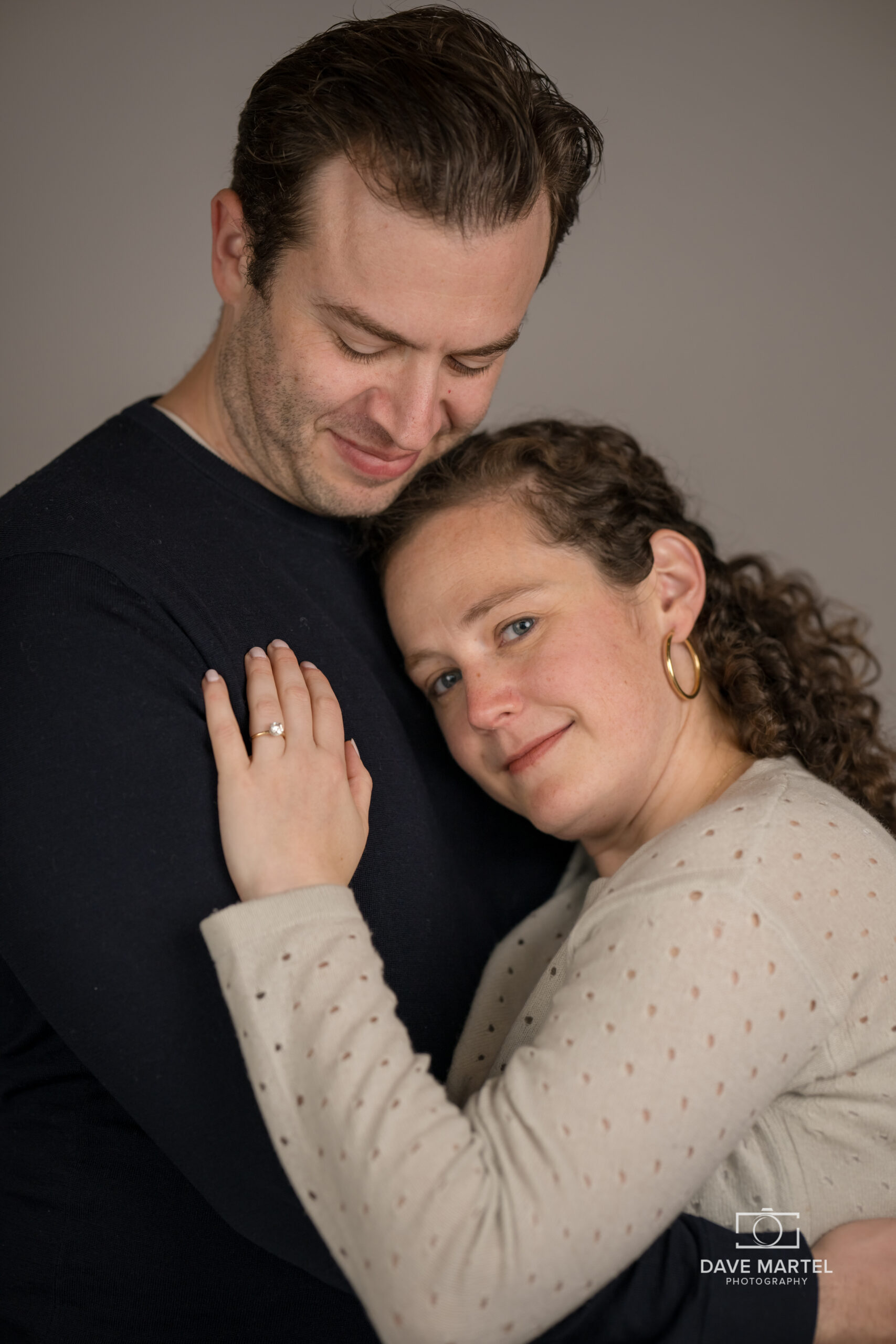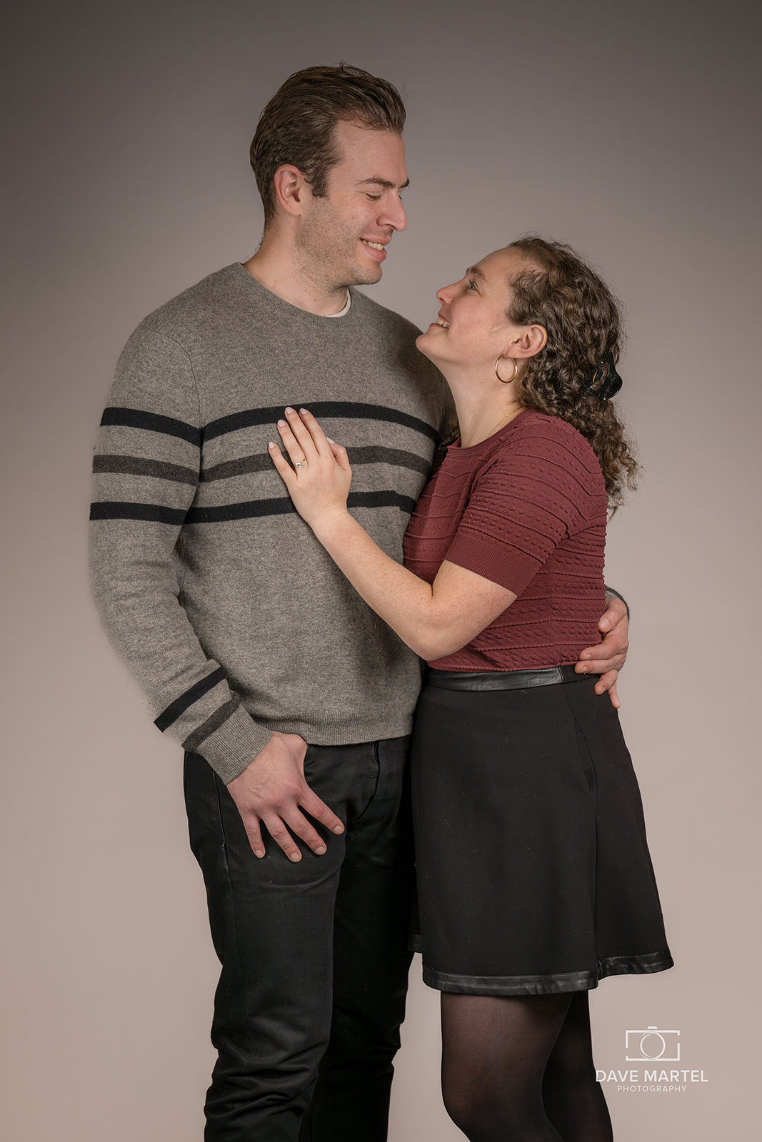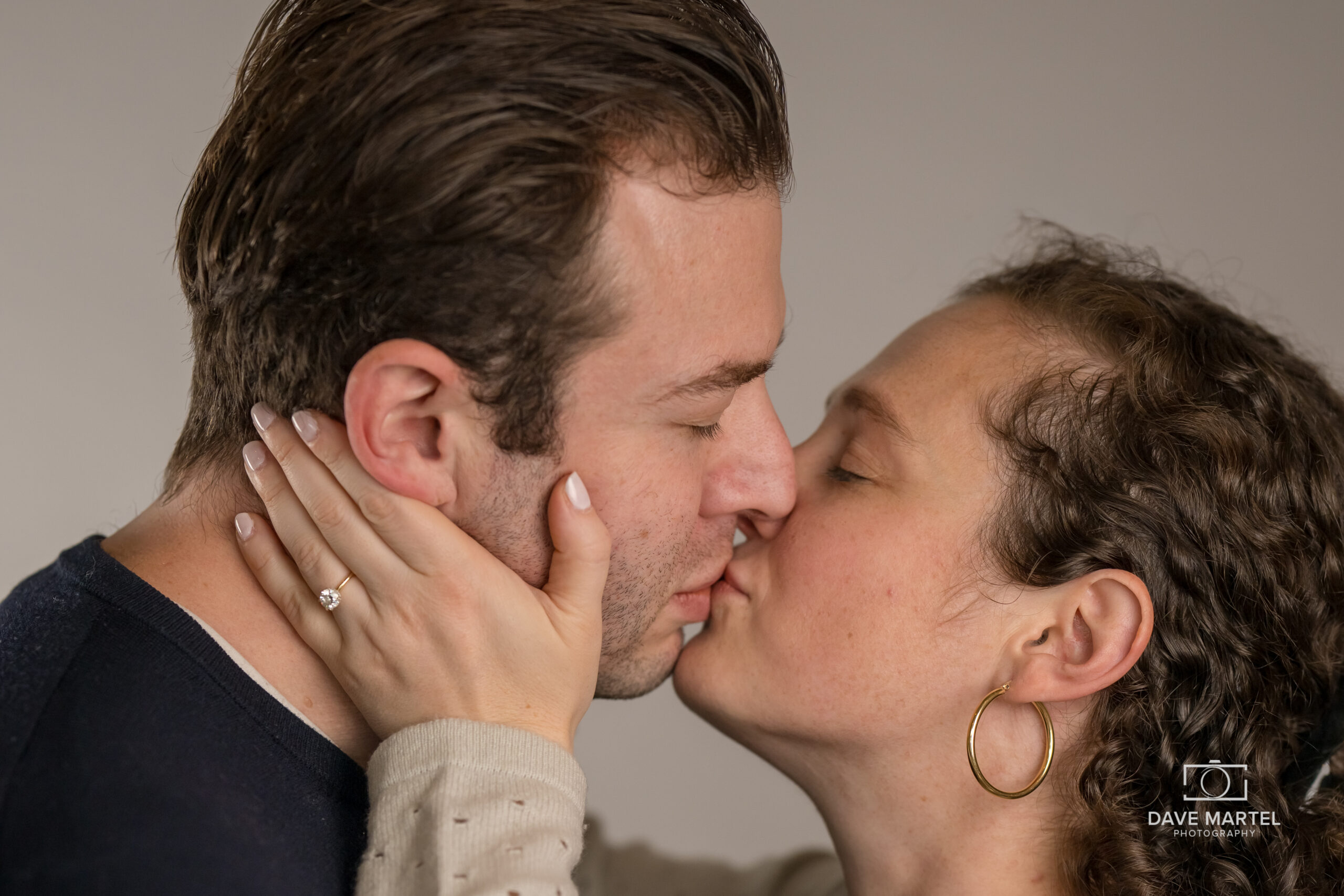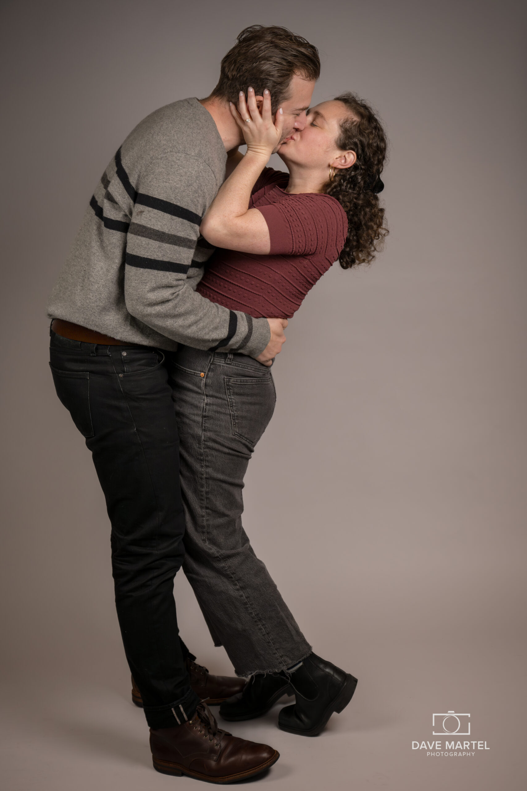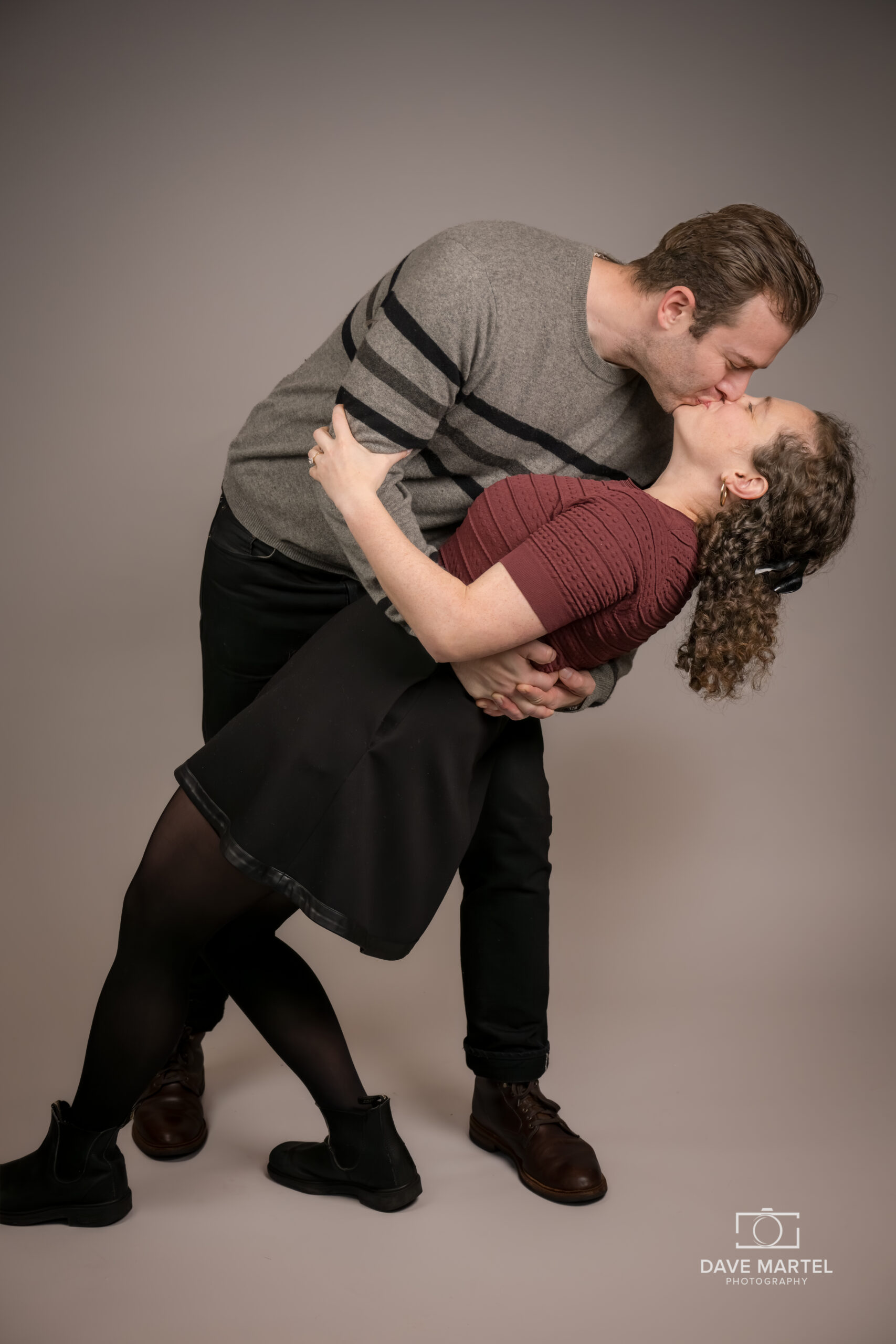When outdoor conditions weren’t cooperating for this engagement session, we moved it indoors, and the result speaks for itself. While an outdoor natural environment can be beautiful, there’s something to be said for how a simple backdrop has a way of stripping everything back to what matters most: two people completely crazy about each other!